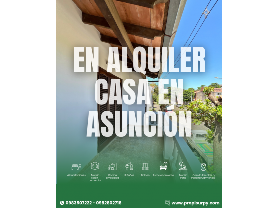 Casa completa y salón en alquiler en Barrio Mcal. Estigarribia, Asunción